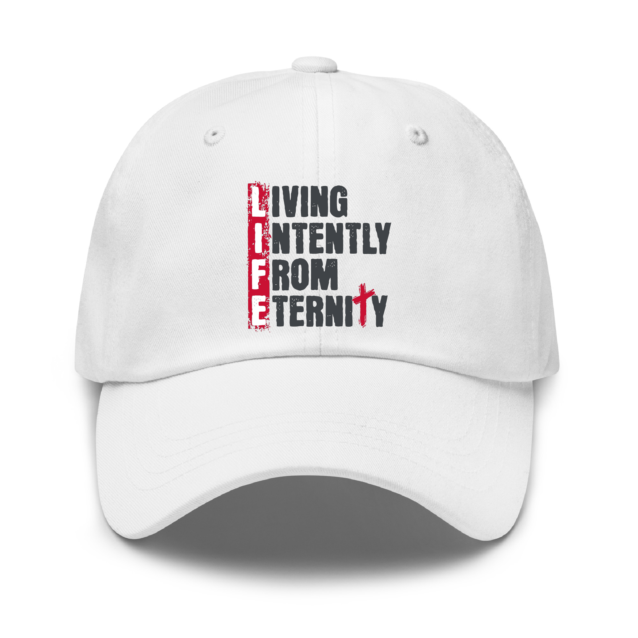 Our L.I.F.E. Dad Hat is the perfect accessory for anyone who wants to make a difference. This full color Dad Hat is snug and form-fitting, making it a great head-warming piece and a staple in any wardrobe, and with our beautiful L.I.F.E. design, you can show your faith and inspire change in America.